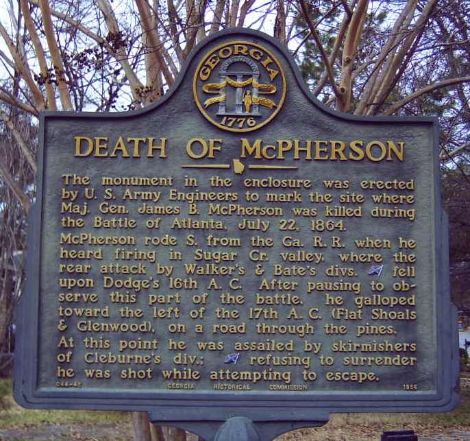 Death of McPherson GHM 044-45 At McPherson Monument, McPherson and Monument Aves, East Atl