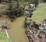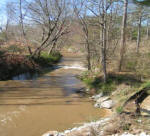 Creek at Henderson's Mill marker at exit of St Bede's Episcopal Church parking lot.