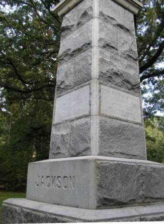 "Stonewall" Jackson Monument marks location where he was wounded on the Chancellorsville Battlefield.