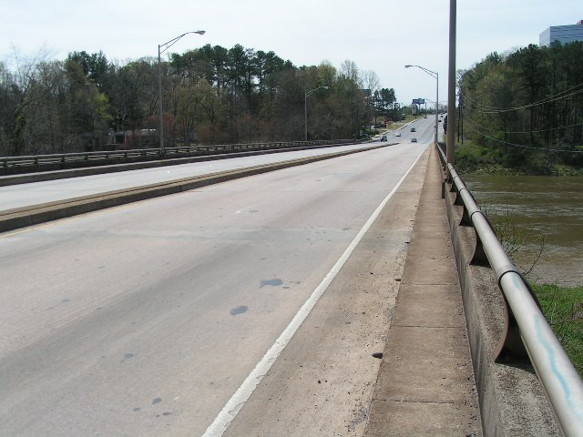 Looking downstream from the center of the bridge at Roswell Rd. and Azalea