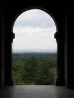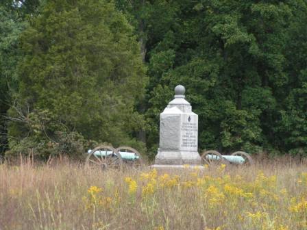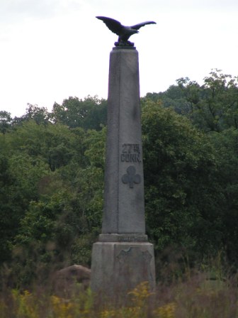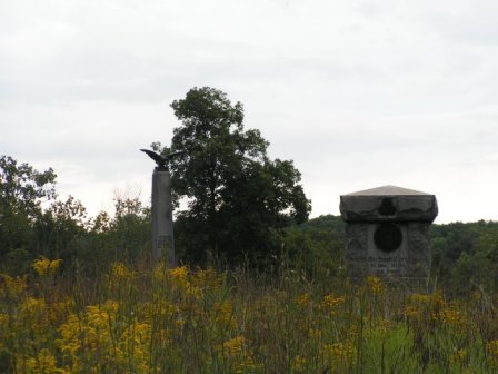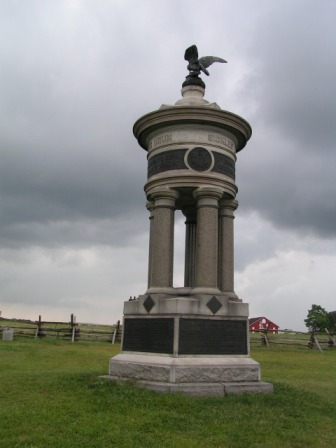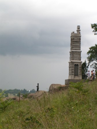 Looking throught the arch of the 44th and 12th New York Infantry monument at the top of Little Round Top
