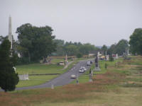 Monuments line the road on Cemetery Ridge where the Federals defended against Pickett's Charge. |