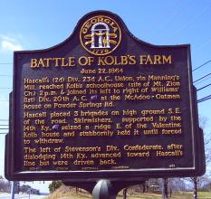 Battle of Kolb's Farm June 22, 1864 GHM 033-12 Callaway Rd at Powder Springs Rd at the Kolb house (8/17/03) [33°54.622N, 84°35.810W] |