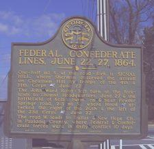 Federal, Confederate Lines, June 22, 27, 1864 GHM 033-56 John Ward Road at intersection with Ga 120 (3/10/05) [33°56.696N, 84°36.326W] |