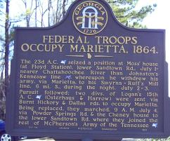Federal Troops Occupy Marietta 1864 GHM 033-54 Ga 120 in parking lot just east of Burnt Hickory Road (2/17/05) [33°57.135N, 84°34.653W] |