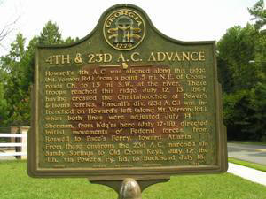 One of the many markers located throughout Georgia. This one marks the advance of the Federal 4th & 23d Army Corps. The marker is numbered GHM 060-15 and is located in Fulton County at Old Powers Ferry Rd and Mt Vernon Highway, Sandy Springs